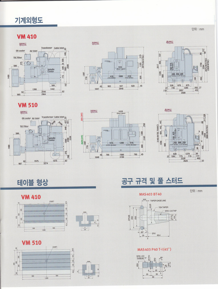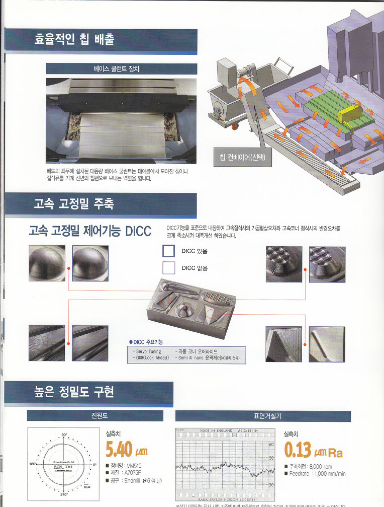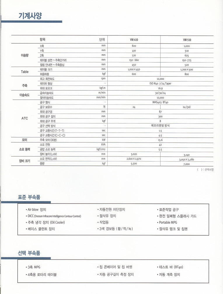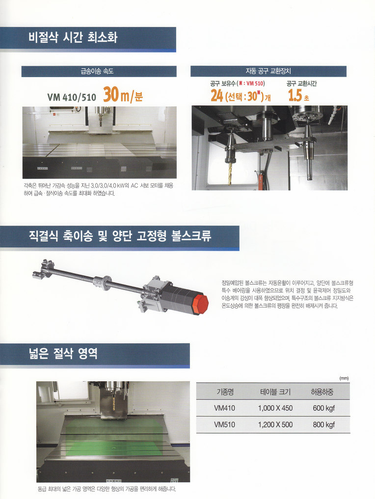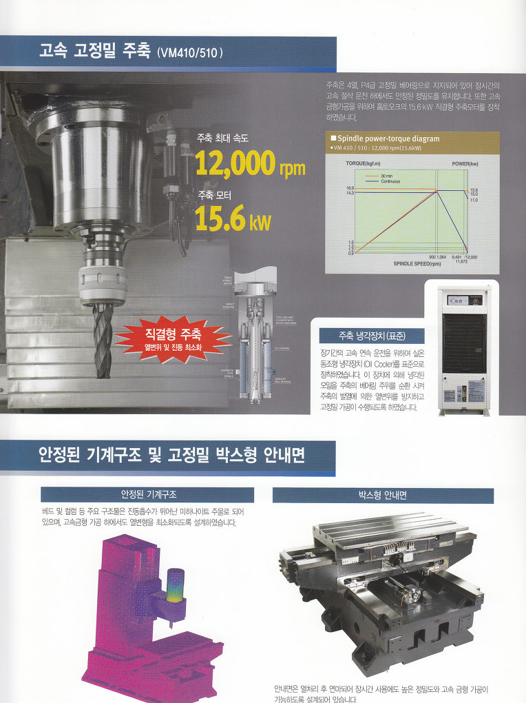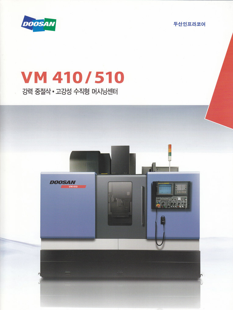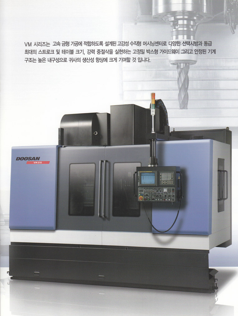 두산머시닝센타 VM410/VM510 시리즈는 고속금형가공에 적합하도록 설계된 고강성 수직형머시닝센타로 다양한선택 시방과동급 최대의