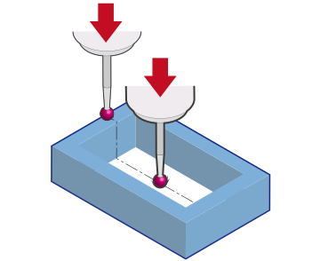 워크의 높이나 가로폭을 계측해, 단차 가공 이나 홈 가공 의 치수를 측정합니다.